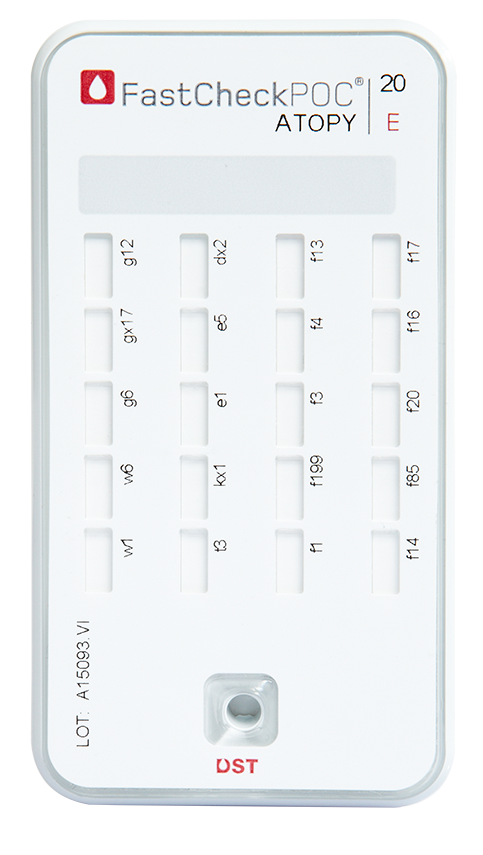 FastCheckPOC® 20 rapid allergy test covers some of the most prevelant allergies, inhalation and food, worldwide. FastCheckPOC® 20 is ideal for healthcare professionals to screen their patients for allergies during consultation. FastCheckPOC® 20 results are semi-quantitative, i.e. the visual categorization into 5 levels enables the classification of the allergy test results into respective CAP classes.